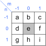 在图像处理中,激活响应(也称为核)h[m,n]通常是一个 3x3矩阵,其下标如下图所示